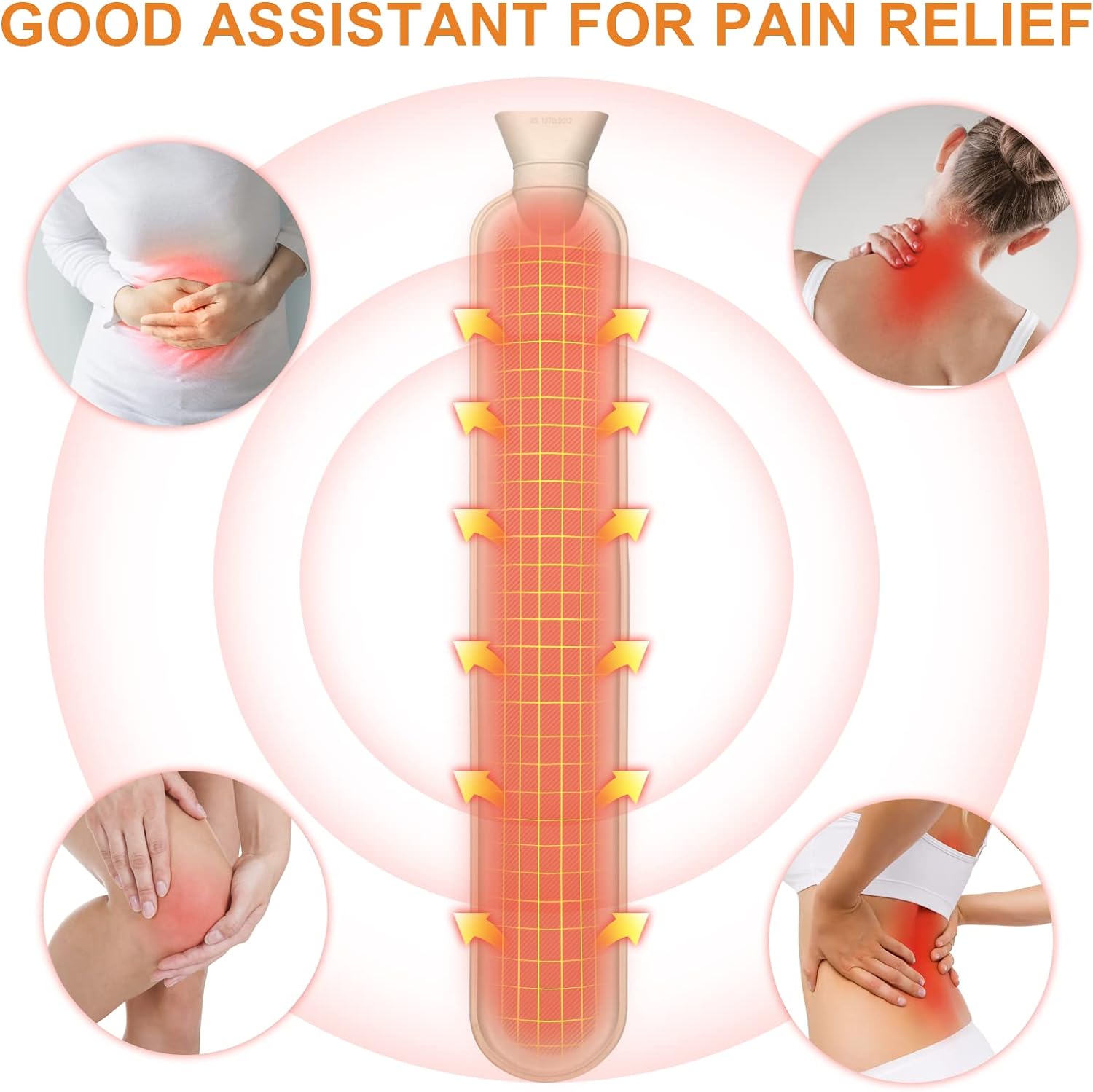 Stay cosy with our Long Hot Water Bottle! With a fluffy faux fur cover and a large 2L capacity, this 73cm rubber hot water bag provides comfort for your neck, waist, abdomen, and legs.
