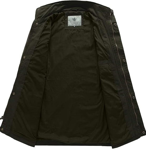 Men's Casual Jacket Classic Warm WenVen Jacket Cotton Leisure Jacket Military Stand Collar , army-green, Medium,