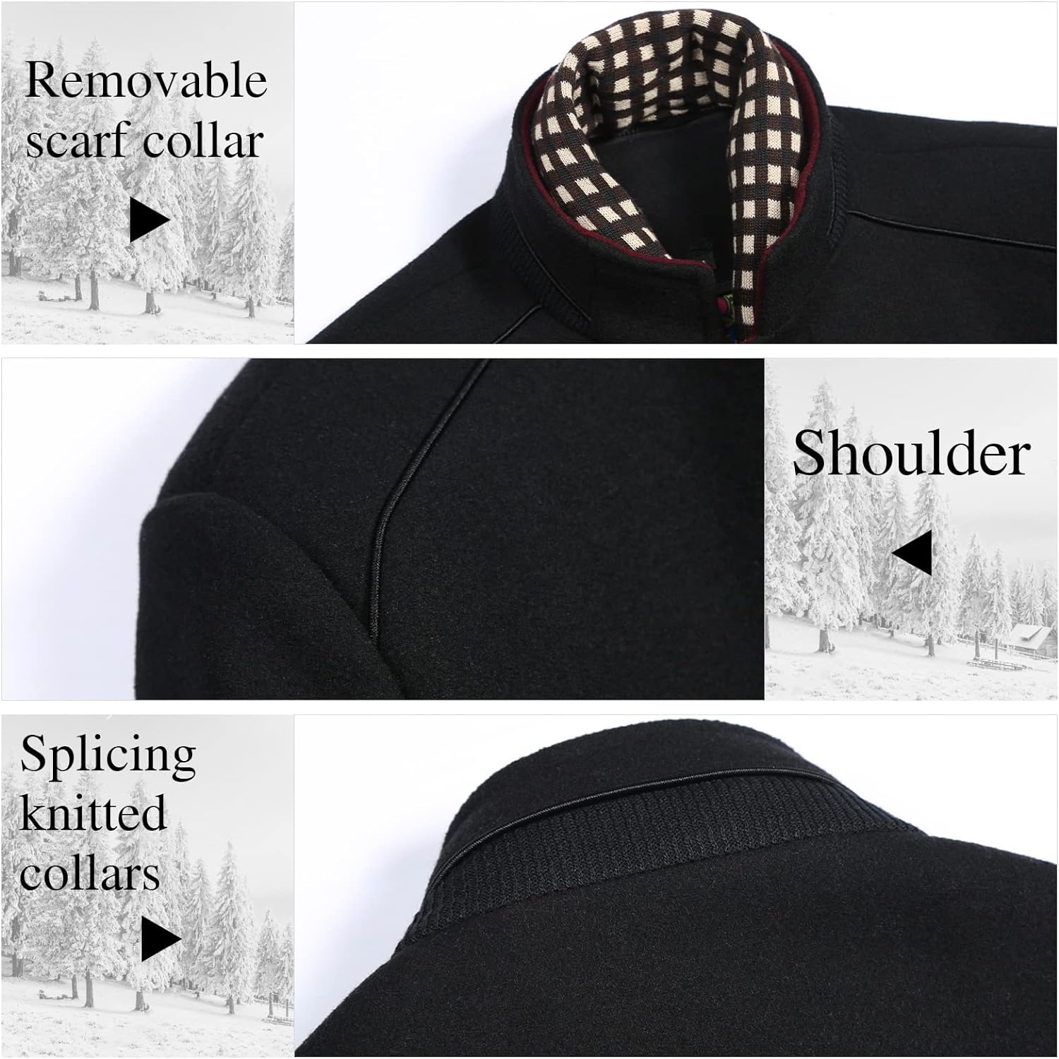 Men's Jacket Winter Wool Coats Warm Casual Overcoat Outwear Business Trench Jacket with Scarf 2104 Black L
