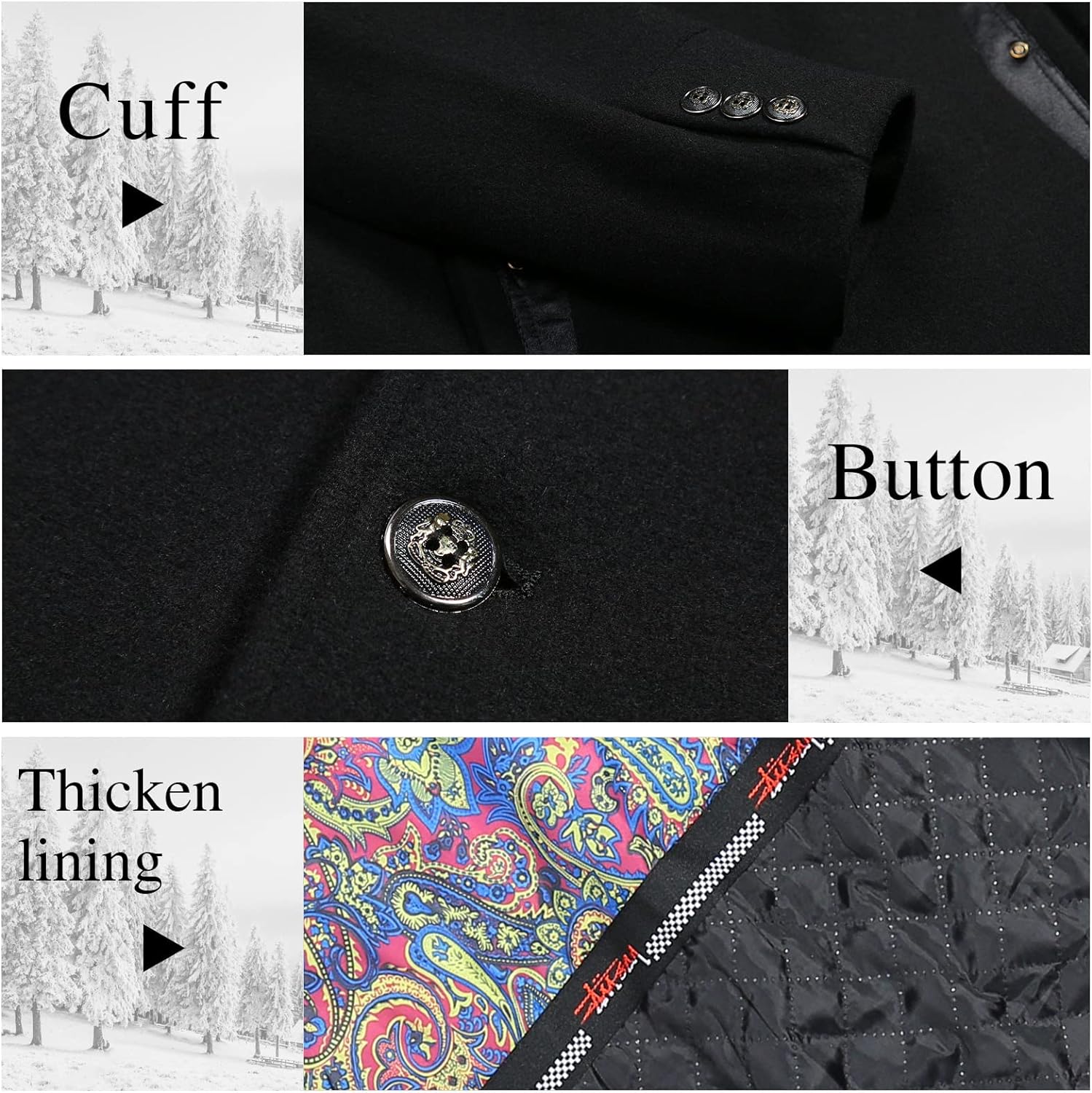 Men's Winter Wool warm coat, Casual Overcoat Outwear Business Trench Jacket with Scarf Black L