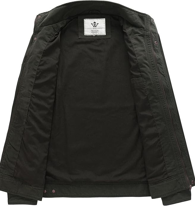 Men's Lightweight Cotton Wenven Jacket Casual army-green Jacket Stand Collar Jackets Outdoor Windproof Jackets