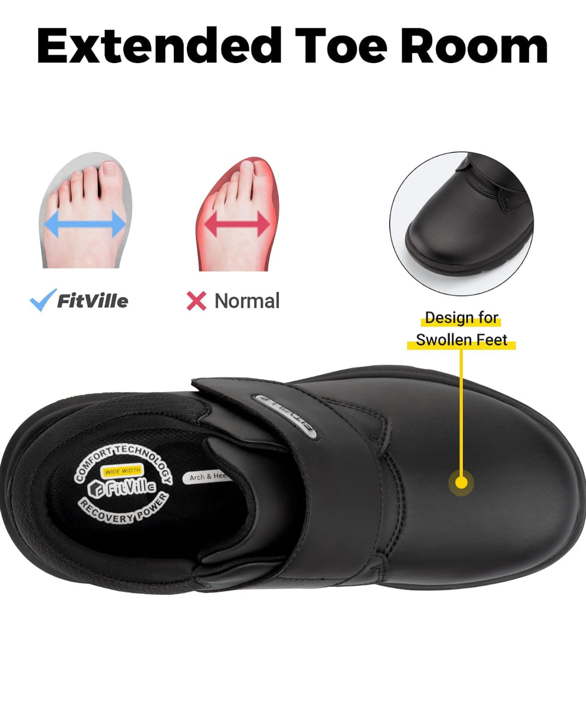 Men's Wide Fit Diabetic Health Care Leather Shoes with Adjustable Straps for Swollen Feet