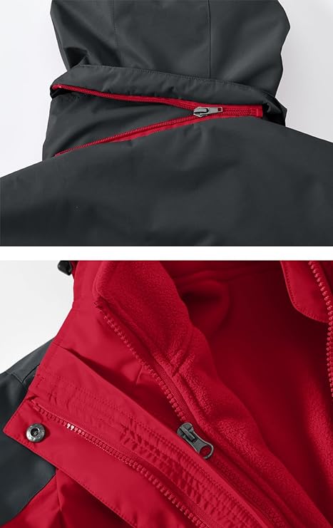 Women's 3 In 1 Red Jacket, Fleece Ski Jacket Softshell Winter Waterproof Full Zip Windproof Coat